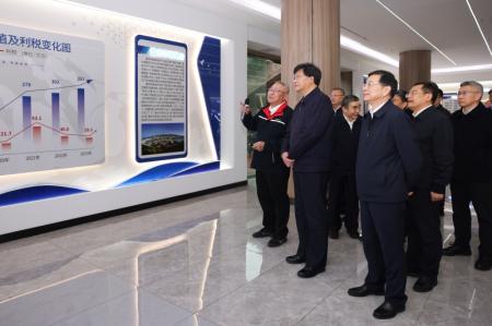 移步到沙盘展厅,王炯在认真观看了产业园宣传片,感受了产品实物,了解了企业所获主要荣誉后说道:“全国五一劳动奖状这个荣誉很难得,这不仅是对公司经营效益的肯定,更彰显了企业在履行社会责任和践行员工关怀上所作出的努力。”